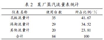 國內(nèi)目前使用比較流行的蒸汽流量計(jì)有孔板流量計(jì)、渦街流量計(jì)等。表2對(duì)某廠1990年在用的流量計(jì)進(jìn)行了初步統(tǒng)計(jì),表明孔板流量計(jì)和渦街流量計(jì)的使用占有主流地位。