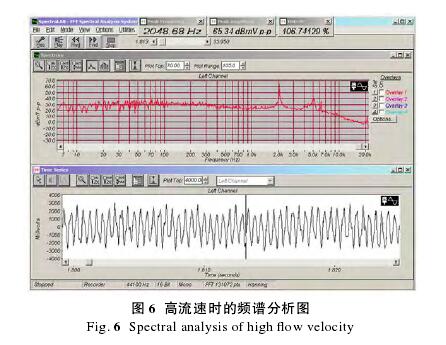 如圖 5 所示,漏波現(xiàn)象使流量偏小 44.3%。針對(duì)這一現(xiàn)象,采用頻譜分析+動(dòng)態(tài)濾波,改善信號(hào)波動(dòng),消除“漏波”現(xiàn)象。信號(hào)可以從時(shí)域分析,也可以從頻域分析。時(shí)域的信號(hào)圖像,是以時(shí)間軸為橫軸;頻域的信號(hào)圖像,是以頻率值作為橫軸。信號(hào)的時(shí)域分析主要側(cè)重于信號(hào)的直觀印象,例如信號(hào)的周期,信號(hào)在某一時(shí)間點(diǎn)的幅值等。信號(hào)的頻域分析,是采用傅里葉變換,將 X(t)變換成 X(f)。具體的變換方法在這里不再贅述。信號(hào)的頻譜圖表明了信號(hào)在不同頻率分量成分的大小,比時(shí)域圖像提供更具體更豐富的頻域圖像。在 Pico Scope 示波器中,可以利用其頻譜分析的功能來(lái)觀察信號(hào)的頻譜。信號(hào)的濾波處理通常是信號(hào)處理中常用的方法。信號(hào)的濾波主要是獲得自己想要的信號(hào),并且過(guò)濾掉不符合實(shí)驗(yàn)要求的信號(hào)。通常有低通、高通、帶通、帶阻這幾種方式。實(shí)際應(yīng)用中,通常是設(shè)計(jì)濾波電路對(duì)電路進(jìn)行濾波。在測(cè)試測(cè)量中,往往需要的是濾掉信號(hào)中的雜波。盡可能排除影響因素,通過(guò)對(duì)鍋爐供暖流量計(jì)傳感器原始信號(hào)直接進(jìn)行實(shí)時(shí)頻譜分析,得出超高流速時(shí)的流量值。