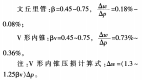 標準節(jié)流裝置(孔板、噴嘴和文丘里管)和V形內(nèi)錐節(jié)流裝置的壓損如下: