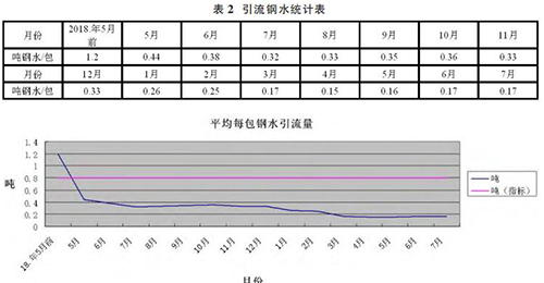 ④通過(guò)建立聯(lián)動(dòng)考核機(jī)制使得員工作業(yè)質(zhì)量得到明顯提升。綜上所述,通過(guò)有針對(duì)性的改進(jìn)后,引流鋼水量大幅下降 80%,鋼水利用率上升 3%。