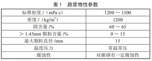 對(duì)跑漿進(jìn)行分析后發(fā)現(xiàn),跑漿是一種由煤漿和一些雜質(zhì)混合而成的半流體物質(zhì),當(dāng)氯甲烷流量表使用煤倉(cāng)中煤堆中上部煤時(shí),由于煤質(zhì)較好,跑漿中小煤塊*少,性質(zhì)同正常煤漿,只是固含量稍高;而使用煤堆底部的煤時(shí),煤質(zhì)差氯甲烷流量表研磨不充分,跑漿中含有約 15% 的小煤塊,分析后的跑漿物質(zhì)參數(shù)如表 1 所示。