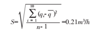 選用渦街流量計(jì)在DN50管線上重復(fù)10次,測量結(jié)果分別為:184.23、184.05、183.96、183.87、182.78、183.78、183.60、183.69、183.60、183.05(單位Nm³/h),計(jì)算得到: