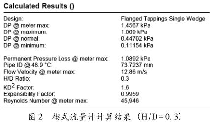 (4)根據(jù)工藝要求及現(xiàn)場(chǎng)安裝環(huán)境選擇耐壓、耐溫等級(jí)、防護(hù)等級(jí)、防爆等級(jí)、輸出信號(hào)等。3測(cè)量熱解氣的渦街流量計(jì)的選型設(shè)計(jì)熱解氣的組分如表1所述,其工藝參數(shù):操作密度0.63kg/m3,運(yùn)動(dòng)粘度2×10-5m2/s,操作溫度48.9℃,操作壓力7.5kPa,管道DN80,*小流量50Nm3/h,正常流量100Nm3/h,*大流量150Nm3/h,儀表測(cè)量范圍選擇0~180Nm3/h。因?yàn)楸狙b置為試驗(yàn)裝置,在裝置運(yùn)行的過(guò)程中,業(yè)主可能會(huì)根據(jù)需要適當(dāng)調(diào)整參數(shù),因此選擇量程比寬一些的流量計(jì)會(huì)有助于調(diào)整后的測(cè)量;另外熱解氣作為產(chǎn)品之一,其流量是驗(yàn)證工藝與關(guān)鍵設(shè)備的工程可行性、優(yōu)化工藝參數(shù)的關(guān)鍵參數(shù)之一,因此使用精度高一些的流量計(jì)也是有必要的;熱解氣的組分隨著參數(shù)的調(diào)整也可能會(huì)發(fā)生變化,因此基于伯努利方程原理的,如孔板、噴嘴、阿牛巴、德?tīng)査汀⑵胶馐降榷疾荒芎芎玫臏y(cè)量,因?yàn)檫@類(lèi)流量計(jì)受流體物性(密度、粘度)和組分變化影響,且*終的熱解氣產(chǎn)品或多或少都有焦油的存在,時(shí)間長(zhǎng)了可能堵塞流量計(jì)。楔式流量計(jì)帶自清潔的功能,如果采用法蘭取壓,變送器采用隔膜密封式變送器,其受焦油的影響較小,楔式流量計(jì)的計(jì)算結(jié)果分別見(jiàn)圖1和圖2。