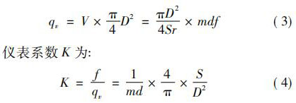 式中: D 為管道內(nèi)徑,m; m 隨發(fā)生體形狀不同而不同。瞬時(shí)體積流量 qv 為: