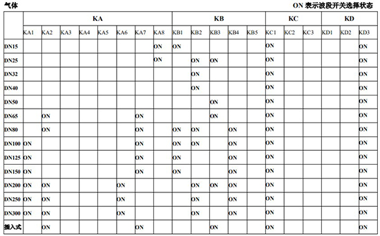 以上表值僅供參考,實際使用中因液體粘度和氣體密度不同應(yīng)在此值附近調(diào)整,頻率低時可將 K3 向大口徑方向調(diào)一至三檔。頻率高時可將 K2 向小口徑方向調(diào)一至三檔。
