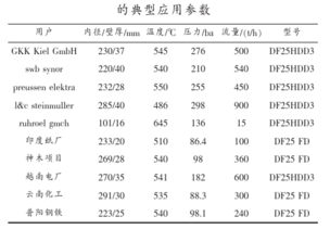 以上措施保證了探頭強(qiáng)度符合安全需求,使高溫高壓蒸汽測(cè)量成為現(xiàn)實(shí)。西斯特流量計(jì)在國(guó)內(nèi)外主蒸汽測(cè)量方面的典型應(yīng)用參數(shù)如表2所示。