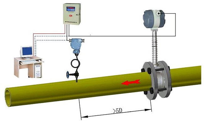 注:調(diào)節(jié)閥盡可能不安裝在渦街流量儀表的上游,而應(yīng)安裝在渦街流量儀表的下游10D處。