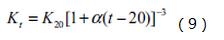 將式(8)帶入式(7)中得到由于溫度變化而引起的儀表系數(shù)的變化為