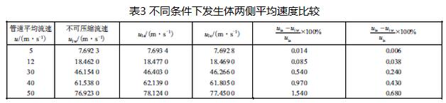 表3的后2列分別表示了空氣、蒸汽由于可壓縮性而引入的計(jì)量偏差,由計(jì)算數(shù)據(jù)可以得出,相同管道平均流速u的條件下,可壓縮介質(zhì)發(fā)生體兩側(cè)的流速均比不可壓縮流體的流速u1大,并且隨u的增大,引起的差值增大,u1的相對(duì)偏差也越來越大,在流速為50m/s時(shí)空氣由于可壓縮性可引起1.54%的偏差,蒸汽由于可壓縮性可引起0.68%的偏差,因此在渦街流量計(jì)的使用中需要考慮可壓縮介質(zhì)引起的影響。