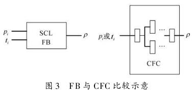 對于PCS7控制系統(tǒng),可自定義功能塊FB,在FB中通過文本化的高級編程語言編寫應(yīng)用程序,通過調(diào)用該功能塊來實現(xiàn)密度計算。由于正常使用時,自定義功能塊編譯下載過程中系統(tǒng)會提示停止CPU,不利于安全生產(chǎn),因此對于重要裝置建議在CFC(Continuous Function Chart)中編寫程序,可以在線下載。與FB不同,CFC采用各種運(yùn)算功能塊搭建而成,其優(yōu)點(diǎn)是直觀、明了,缺點(diǎn)是功能塊多,搭建繁瑣。在CFC中編寫程序,可以在保證蒸汽計量精度的情況下進(jìn)一步簡化程序:工藝要縮小蒸汽變化的范圍;盡量以壓力或溫度中的一個影響較大的參數(shù)作為計算密度函數(shù)中的變量。FB與CFC比較示意如圖3所示。