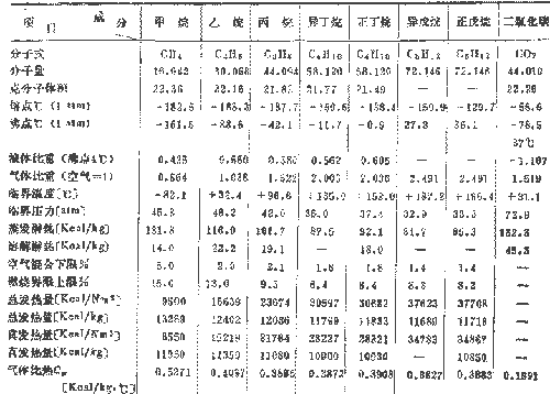 表2 液化天然氣成分物質(zhì)的物理常數(shù)